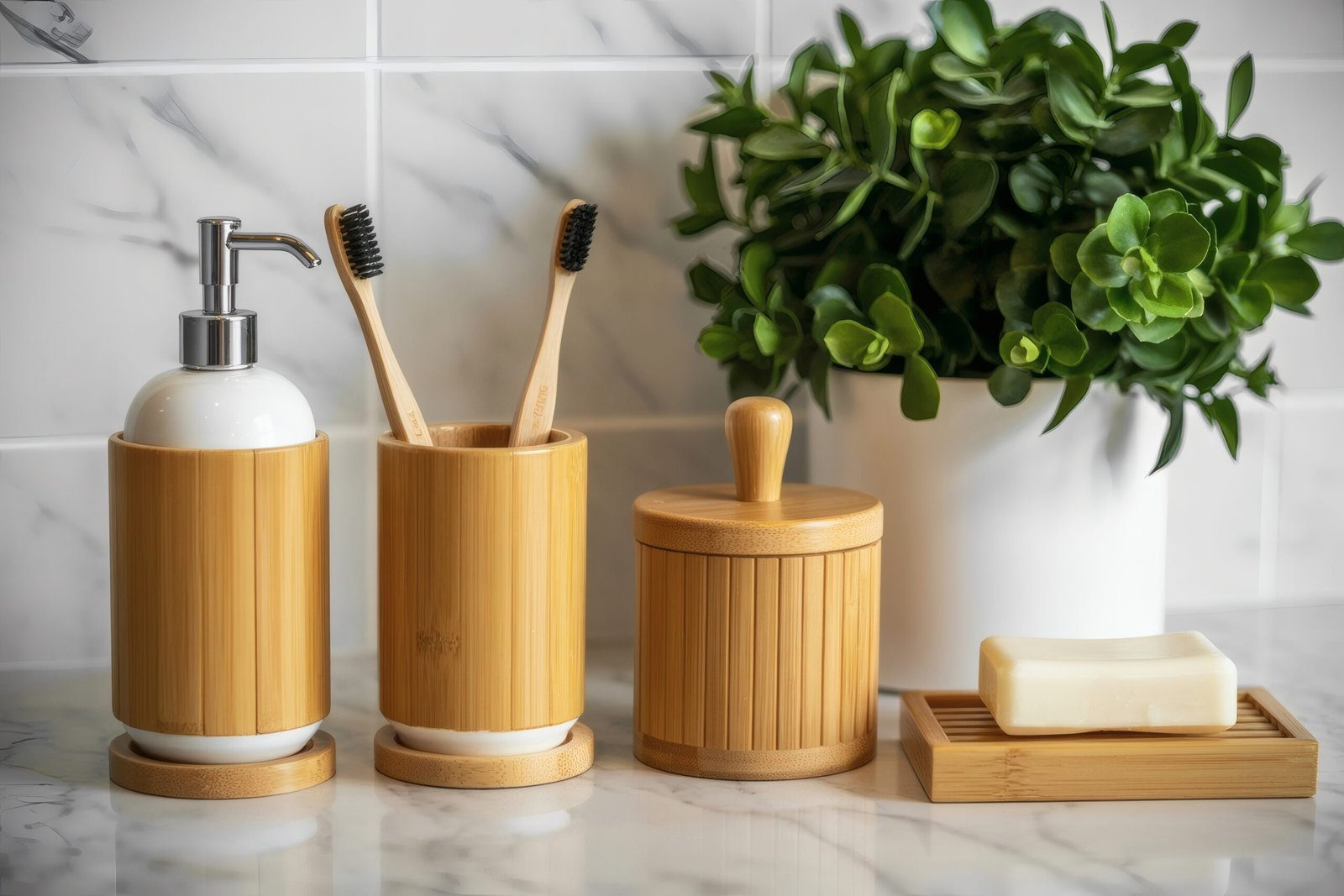 Bamboo bathroom accessories