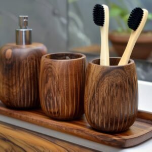 Wooden bathroom accessories